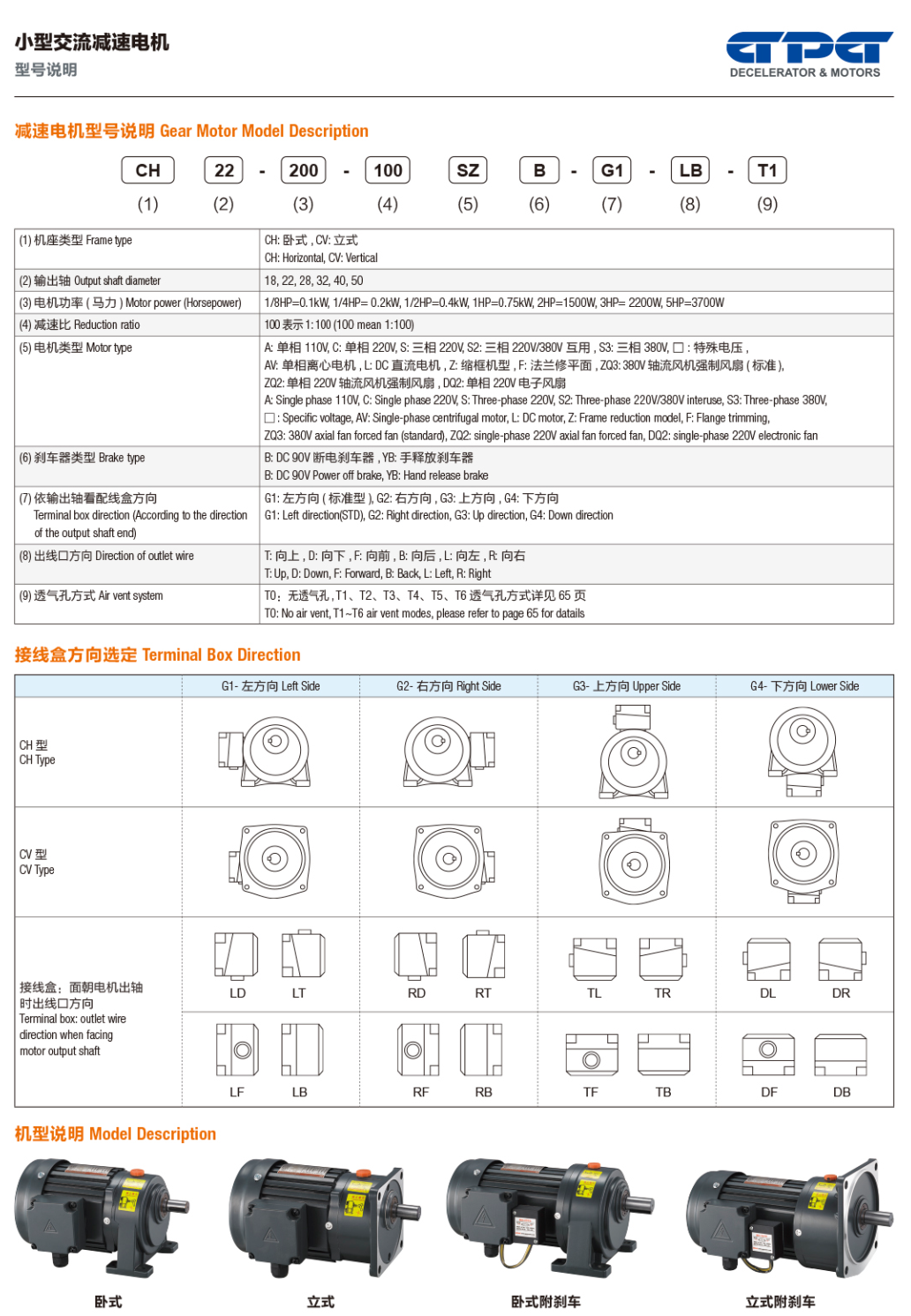 - 安装与环境:根据设备布局选择 “卧式”“立式” 或 “直角轴” 安装;根据环境选择 “防护等级”(如 IP54 防粉尘、IP65 防水,户外或潮湿环境需更高防护)。